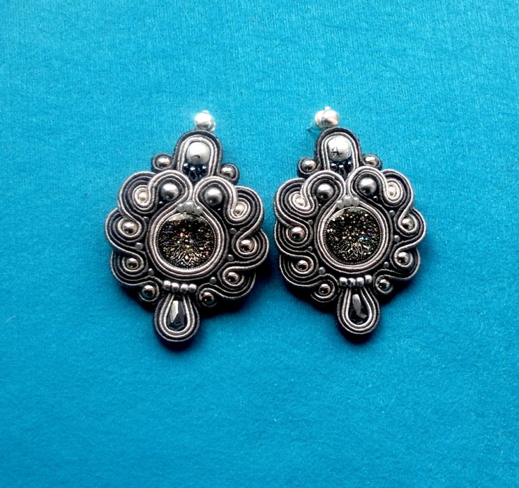 Piękne i efektowne kolczyki zostały wykonane ręcznie pracochłonną techniką haftu sutasz.