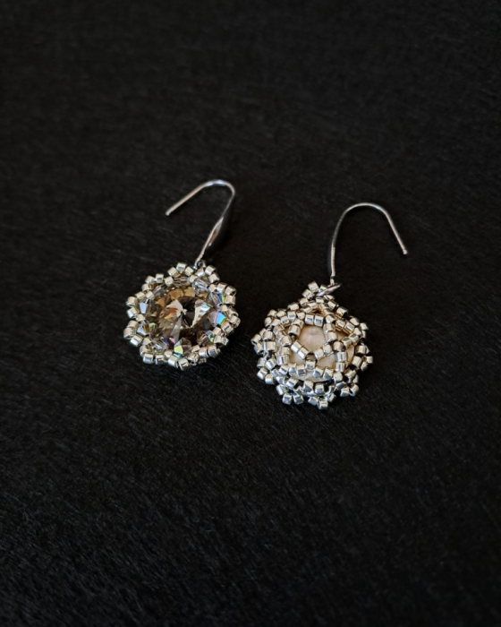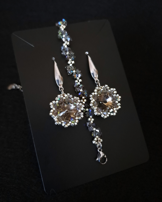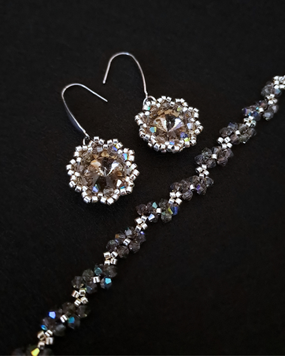 Kolczyki potrafią hipnotyzować światłem, bransoletka - otulać nadgarstek subtelnym blaskiem. Razem tworzą duet, który łączy dwa światy: wyrazistość i delikatność. Kolczyki i Bransoletka "Black Diamond" to gra kontrastów - mocne akcenty grafitowych kryształów Preciosa zestawione z lekką formą ręcznie wykonanego splotu. Ich grafitowo-srebrzysty blask przywodzi na myśl nocne niebo pełne gwiazd - głębokie, eleganckie, a także odrobinę tajemnicze. To biżuteria, która dodaje charakteru, a jednocześnie pozostaje uniwersalna. Idealna zarówno do codziennych stylizacji, jak i na wyjątkowe okazje, kiedy chcesz podkreślić swoją pewność siebie i indywidualny styl.