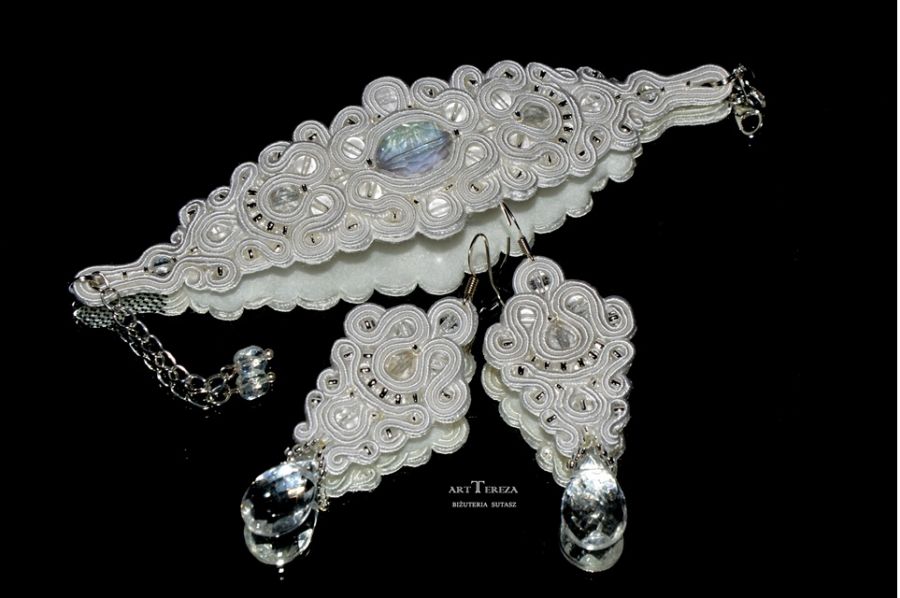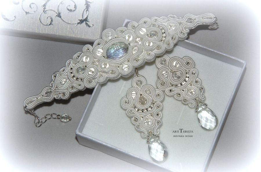Nazwa produktu: kolczyki i bransoletka ślubna sutasz