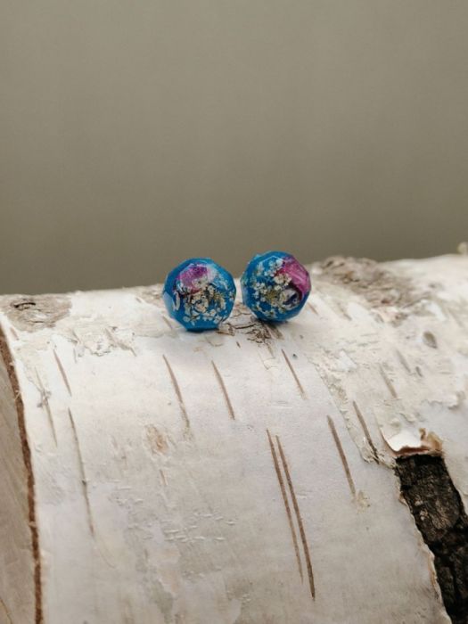 Zadaj pytanie dotyczące produktu: Kolczyki Niebieska Łąka – ręcznie robione kolczyki z żywicy z zatopionymi kwiatami