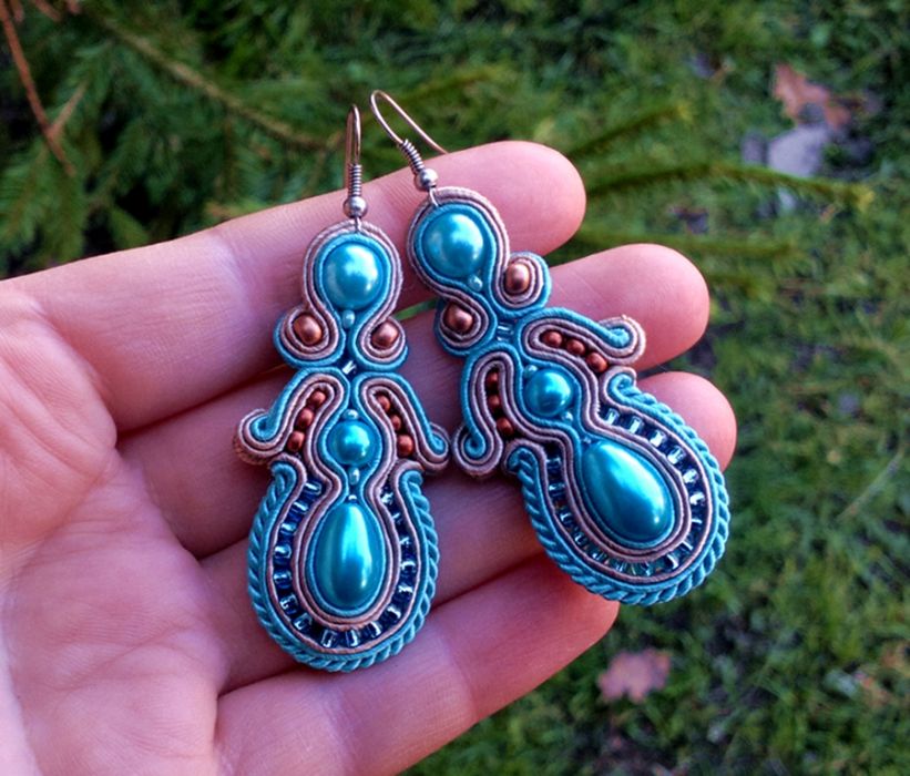 Piękne, efektowne, perłowe kolczyki zostały wykonane ręcznie pracochłonną techniką haftu sutasz. Robią wielkie wrażenie!