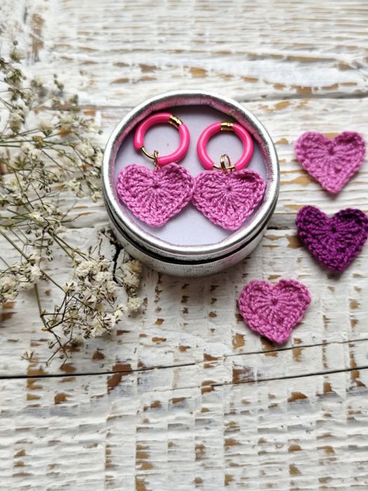 Zadaj pytanie dotyczące produktu: Kolczyki serduszka szydełkowe z zapięciem z emalii - różowe