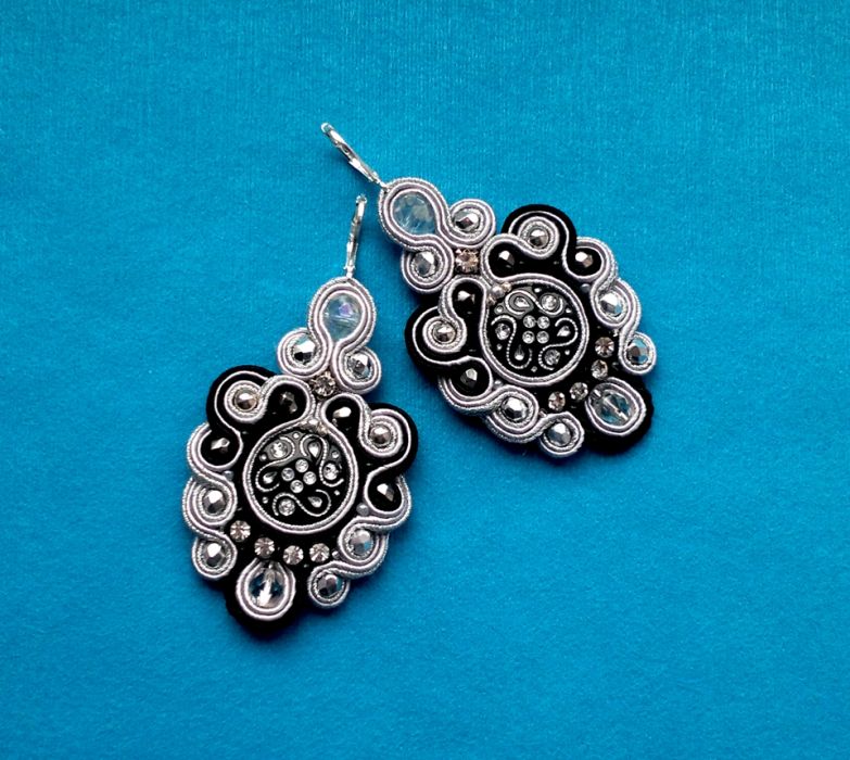 Klasyczne połączenie kolorów czarnego, szarego i srebrenego oraz dodanie kryształów prawdziwej cyrkonii które cudownie się mienią diamentowym połyskiem nie tylko na słońcu, a w dodatku wieczorem przy sztucznym nawet słabym oświetleniu, sprawia że kolczyki prezętują się przepięknie i przyciągają wzrok robiąc wielkie wrażenie!!!