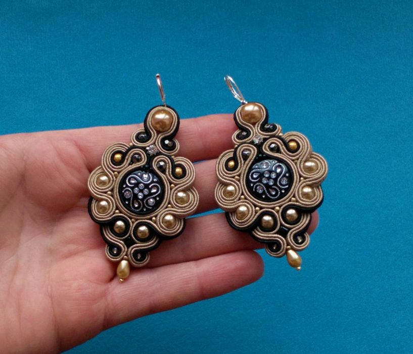 Piękne, efektowne kolczyki zostały wykonane ręcznie pracochłonną techniką haftu sutasz.