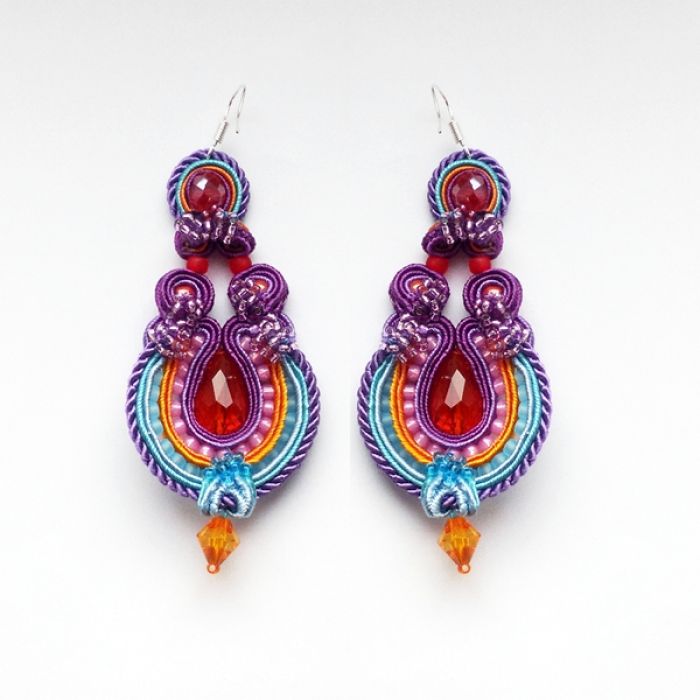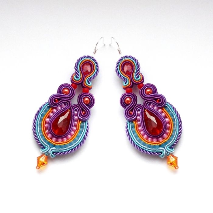 Piękne, lśniące i efektowne kolczyki zostały wykonane ręcznie techniką haftu sutasz.