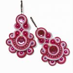 Piękne unikatowe kolczyki wykonane czasochłonną metodą haftu sutasz, zaprojektowane i wykonane własnoręcznie z niezwykłą precyzją i starannością. Kolczyki wykonane z różowych i kremowych koralików oraz kryształków oprawionych białym, jasno różowym oraz w kolorze fuksji sznurkiem sutasz. Długość całkowita ok 6,5 cm, szerokość do 3,5 cm. Bigle ze stali szlachetnej w kolorze srebrnym. Z tyłu podklejone różowym filcem. Kolory mogą się różnić w zależności od ustawienia monitora. Możliwość wymiany bigla.
