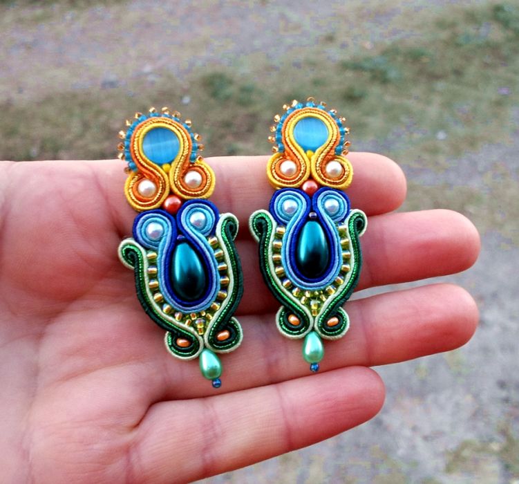 Piękne kolczyki w nasyconych optymistycznych i energetycznych barwach zostały wykonane ręcznie pracochłonną techniką haftu sutasz. Robią wielkie wrażenie!!!