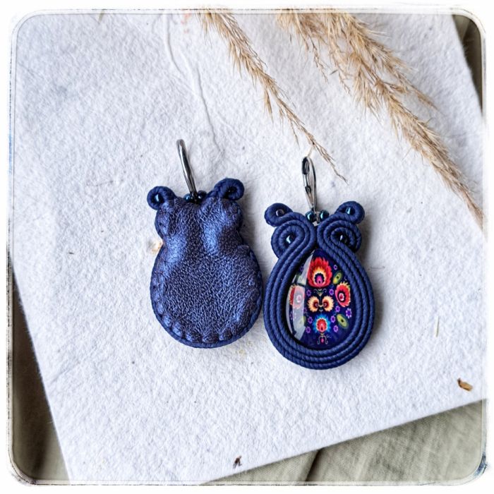 Nazwa produktu: Kolczyki sutasz soutache Folk granatowe blue