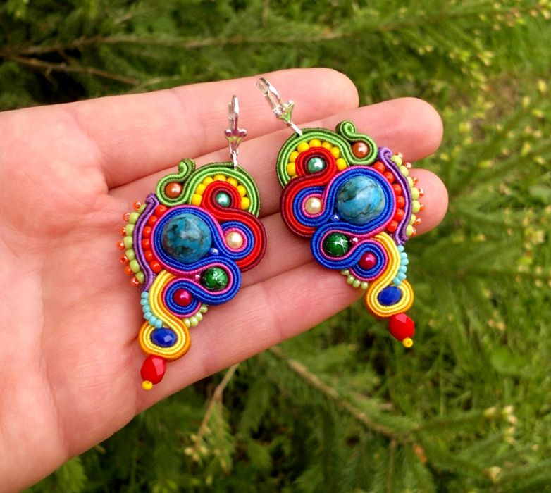 Przepiękne i unikatowe kolczyki zostały wykonane ręcznie pracochłonną techniką haftu sutasz w soczystych kolorach lata. Robią wielkie wrażenie!!!