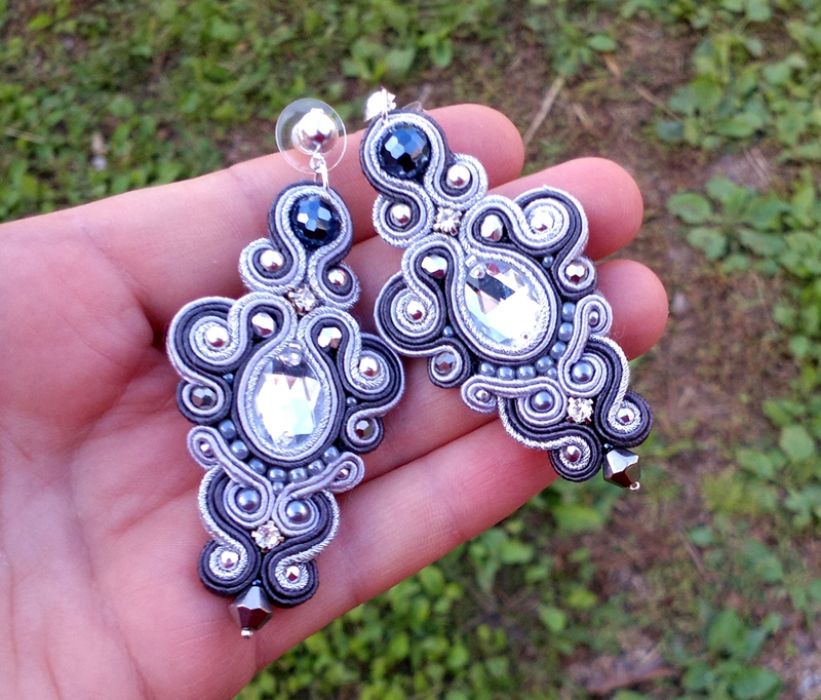 Piękne i efektowne, bogate i lśniące kolczyki zostały wykonane ręcznie techniką haftu sutasz. Robią wielkie wrażenie!