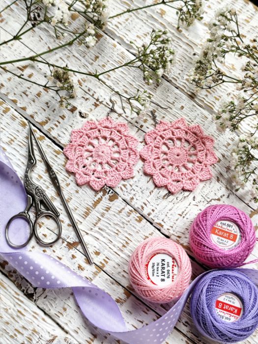 Zadaj pytanie dotyczące produktu: Kolczyki szydełkowe rozetki - jasnoróżowe