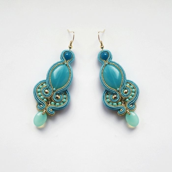 Piękne i efektowne kolczyki zostały wykonane ręcznie techniką haftu sutasz.