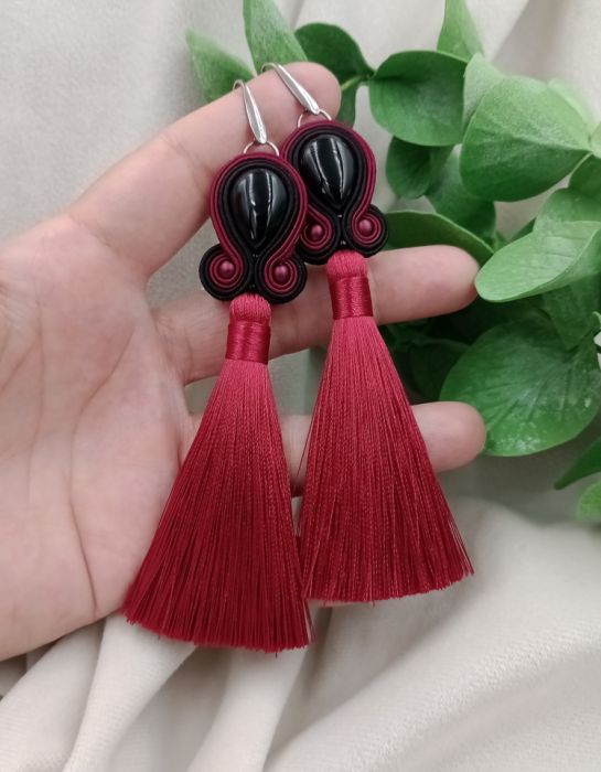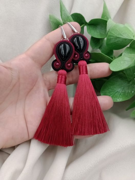 Zadaj pytanie dotyczące produktu: Kolczyki z chwostami czarne bordowe onyksy