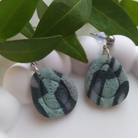"Artemis II" - kolczyki wykonane ręcznie z gliny polimerowej w odcieniach zieleni z efektem półprzeźroczystości. Oryginalne i ultra lekkie.