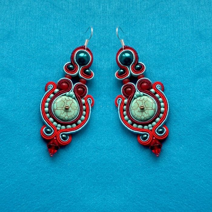 Ładne i eleganskie kolczyki zostały wykonane ręcznie techniką haftu sutasz.