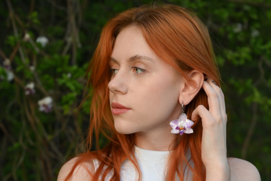 Zadaj pytanie dotyczące produktu: Kolczyki z prawdziwą orchideą w żywicy kwiaty biżuteria