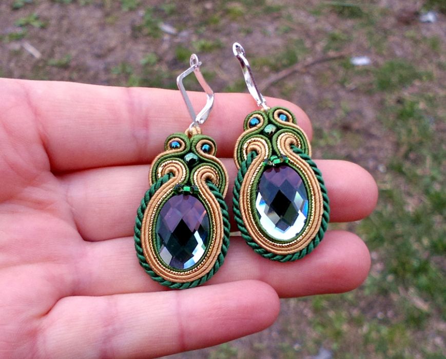 Piękne, lśniące i efektowne kolczyki zostały wykonane ręcznie techniką haftu sutasz. Pięknie błyszczą w świetle!