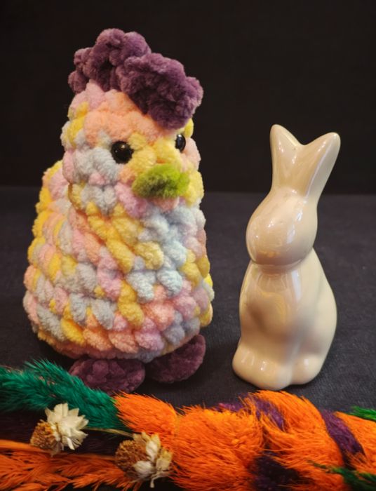 Zadaj pytanie dotyczące produktu: Kolorowa kurka szydełkowa handmade maskotka dekoracja wielkanocna 12 cm