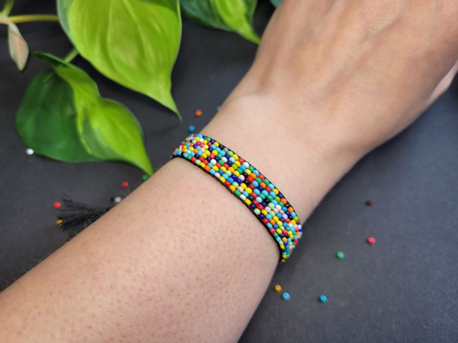 Ręcznie pleciona, regulowana bransoletka z kolorowych koralików. Idealna do letnich stylizacji, świetna na prezent lub jako wyraz Twojego unikalnego stylu!