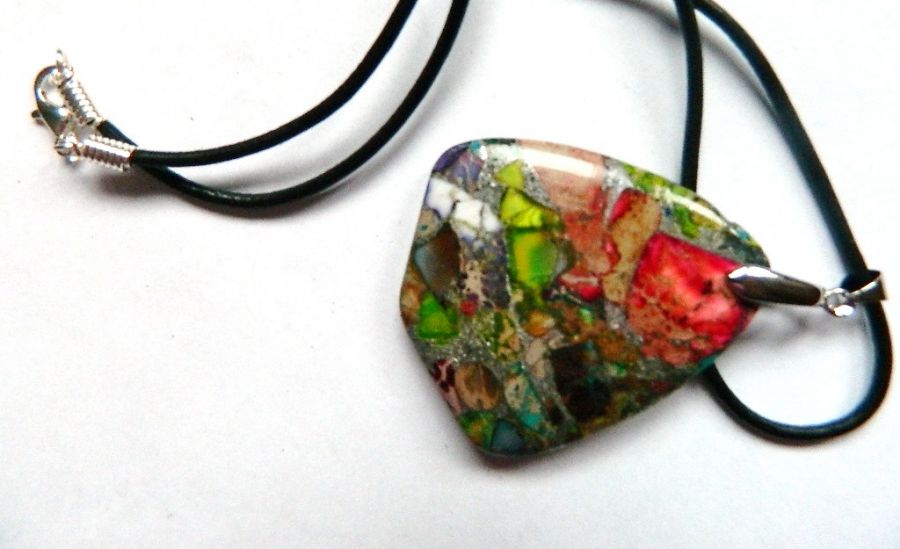 Zadaj pytanie dotyczące produktu: Kolorowy jaspis tęczowy, wisiorek tarcza na rzemyku