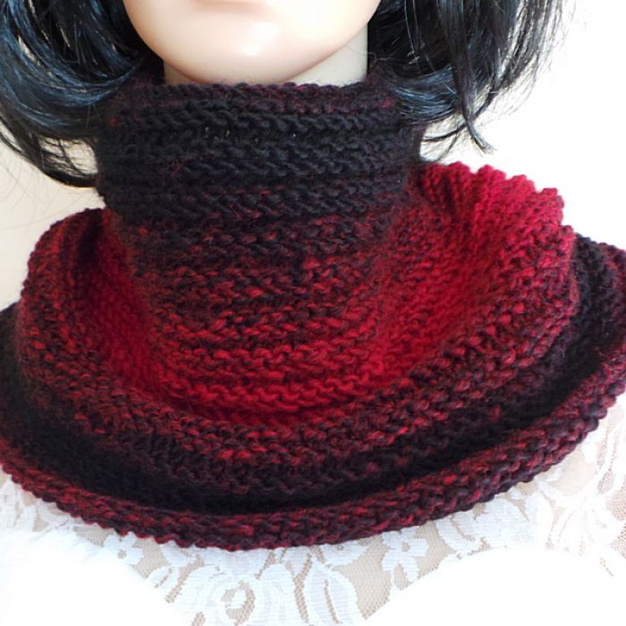 Ciepły, miękki ,bezszwowy, przyjazny dla skóry komin, w kolorze czarno - czerwonym. Wykonany ręcznie na drutach. Przybliżone wymiary: obwód na górze ok. 56 cm, obwód na dole ok. 80 cm, wysokość ok. 30 cm. Skład włóczki 25% wełna, 75% aryl premium. Fajny pomysł na prezent. Zapraszam.