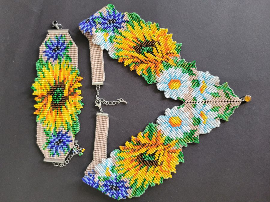 Zadaj pytanie dotyczące produktu: Komplet "Bukiet Słoneczny" naszyjnik i bransoletka z kwiatami z koralików