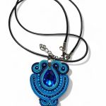 Komplet biżuterii zaprojektowany i wykonany czasochłonną metodą haftu sutasz. Komplet powstał z niebieskich i kobaltowych koralików oraz kryształków oprawionych niebieskim, turkusowym i granatowym sznurkiem sutasz. Z tyłu podklejony czarną skórką. Kolor rzeczywisty może się nieznacznie różnić w zależności od ustawienia monitora. Piękne unikatowe kolczyki wykonane czasochłonną metodą haftu sutasz, zaprojektowane i wykonane własnoręcznie z niezwykłą precyzją i starannością. Kolczyki wykonane z niebieskich i kobaltowych koralików oraz kryształków oprawionych niebieskim, turkusowym i granatowym sznurkiem sutasz. Długość całkowita ok 7 cm, szerokość do 3 cm. Bigle ze stali szlachetnej w kolorze srebrnym. Z tyłu podklejone czarną skórką. Długość zawieszki 6cm, szerokość do 4cm.
