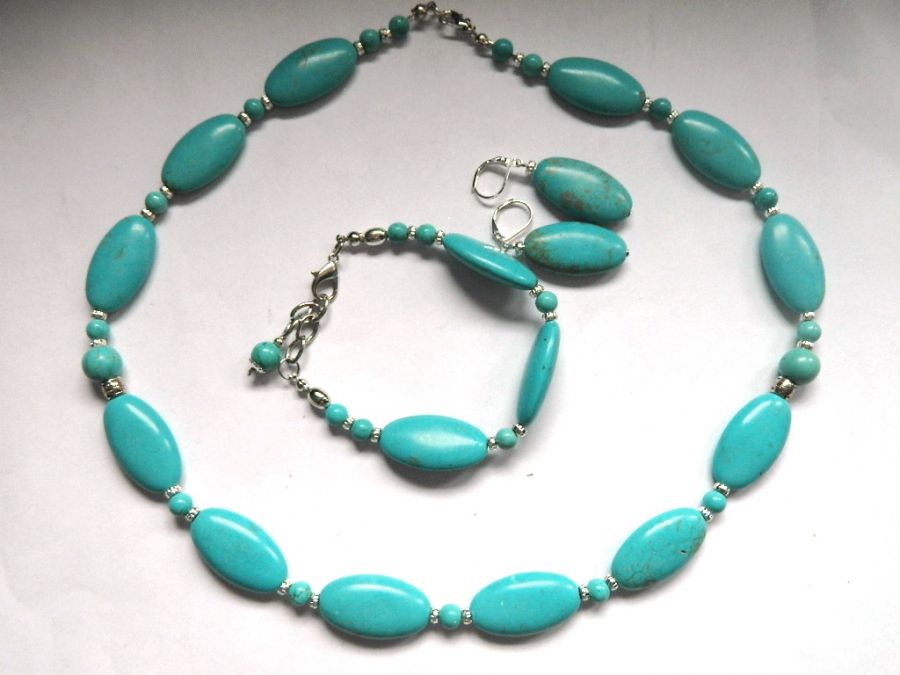 Nazwa produktu: Biżuteria z turkusami naszyjnik, bransoletka, kolczyki