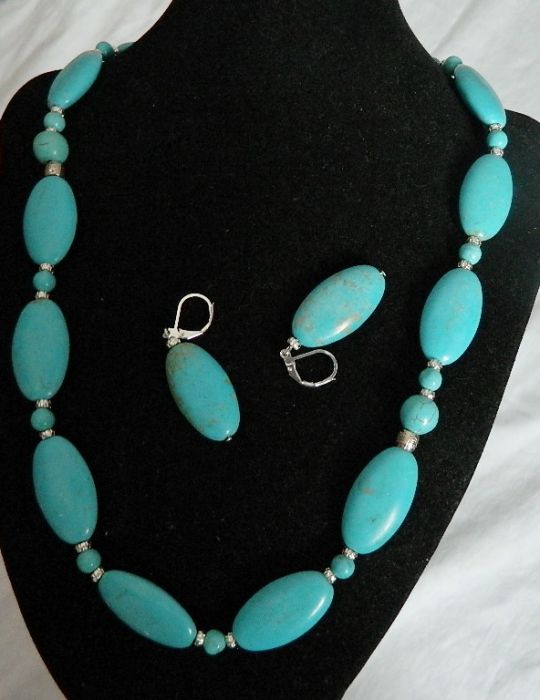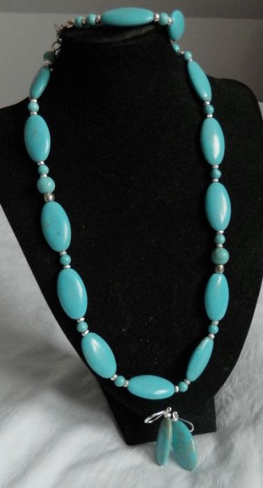 Piękny, oryginalny zestaw biżuterii wykonany z naturalnego turkusu.