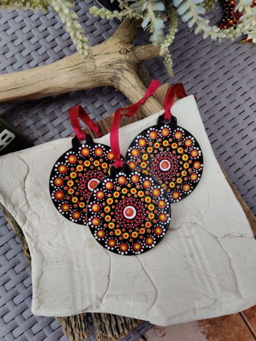 Nazwa produktu: Komplet ręcznie malowanych bombek świątecznych - Mandala czerwona