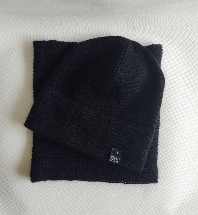 Nazwa produktu: Komplet ręcznie robiony na drutach z alpaką, czarny.