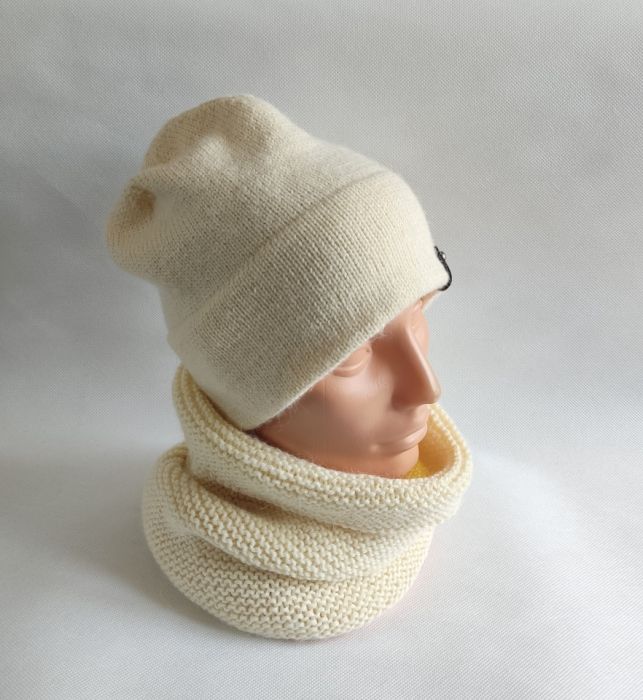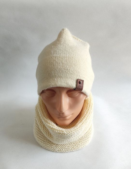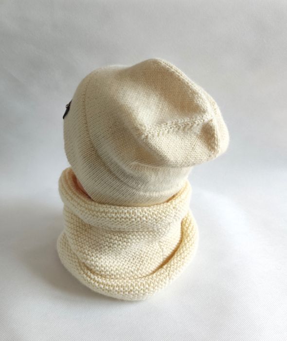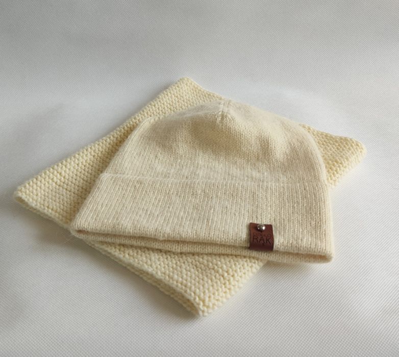 Nazwa produktu: Komplet ręcznie robiony na drutach z alpaką, kremowy.