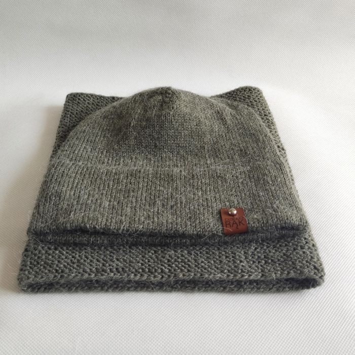 Zadaj pytanie dotyczące produktu: Komplet ręcznie robiony na drutach z alpaką, szara zieleń.