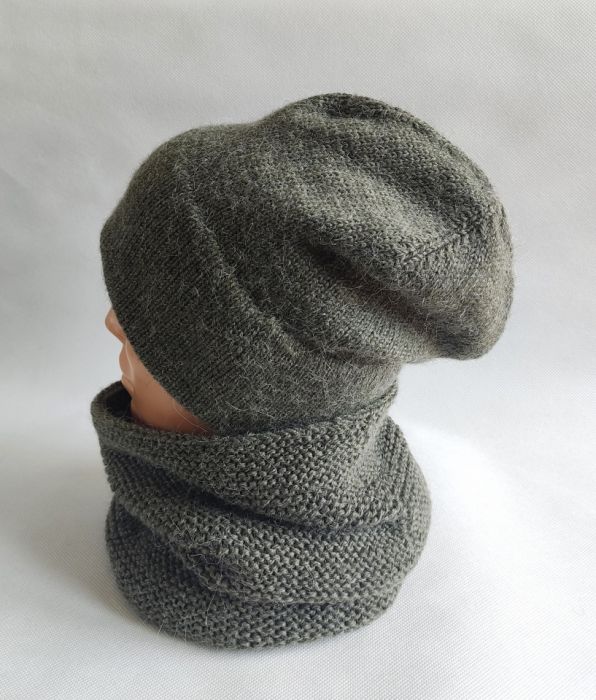 Nazwa produktu: Komplet ręcznie robiony na drutach z alpaką, szara zieleń.