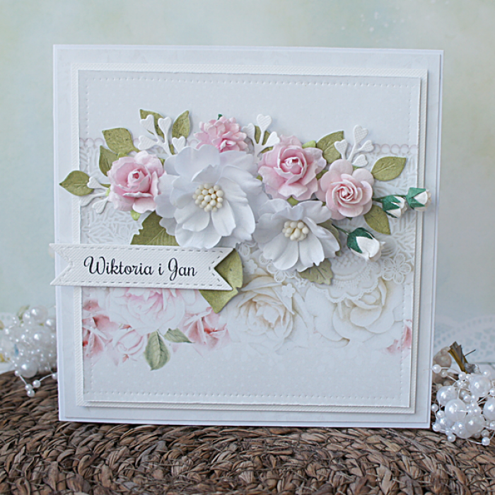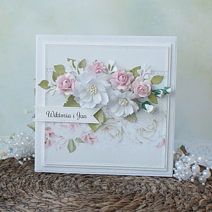 Urocza i bardzo romantyczna kartka ślubna dla wyjątkowej pary w komplecie z pudełkiem.