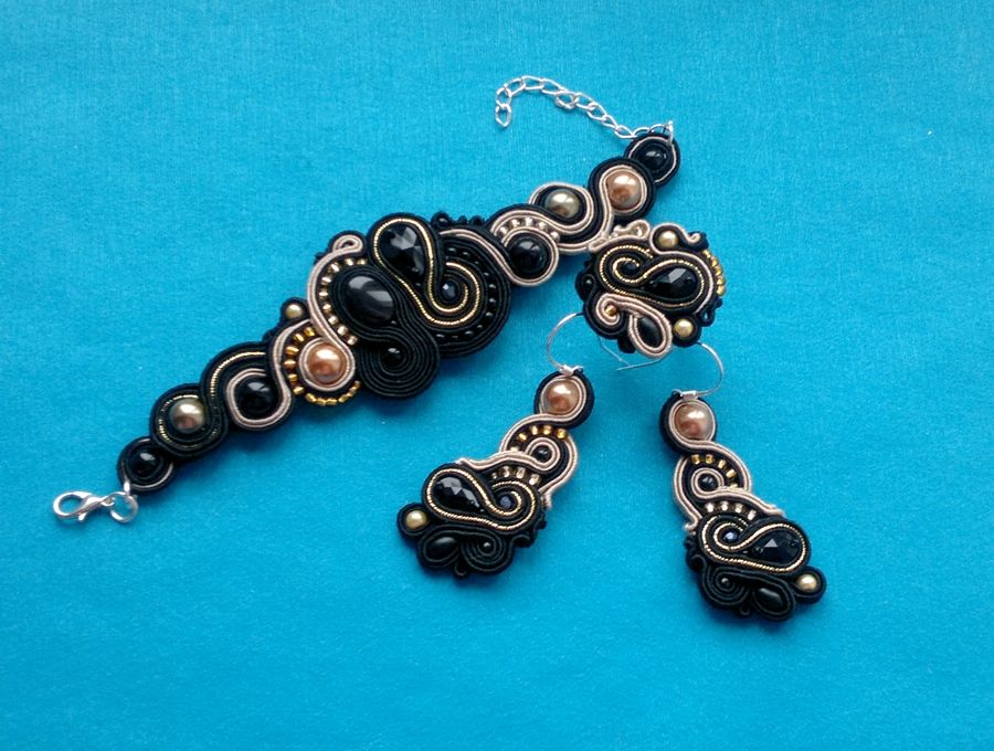 Piękne, efektowne kolczyki, pierścionek i bransoletka zostały wykonane ręcznie pracochłonną techniką haftu sutasz. Robią wielkie wrażenie!