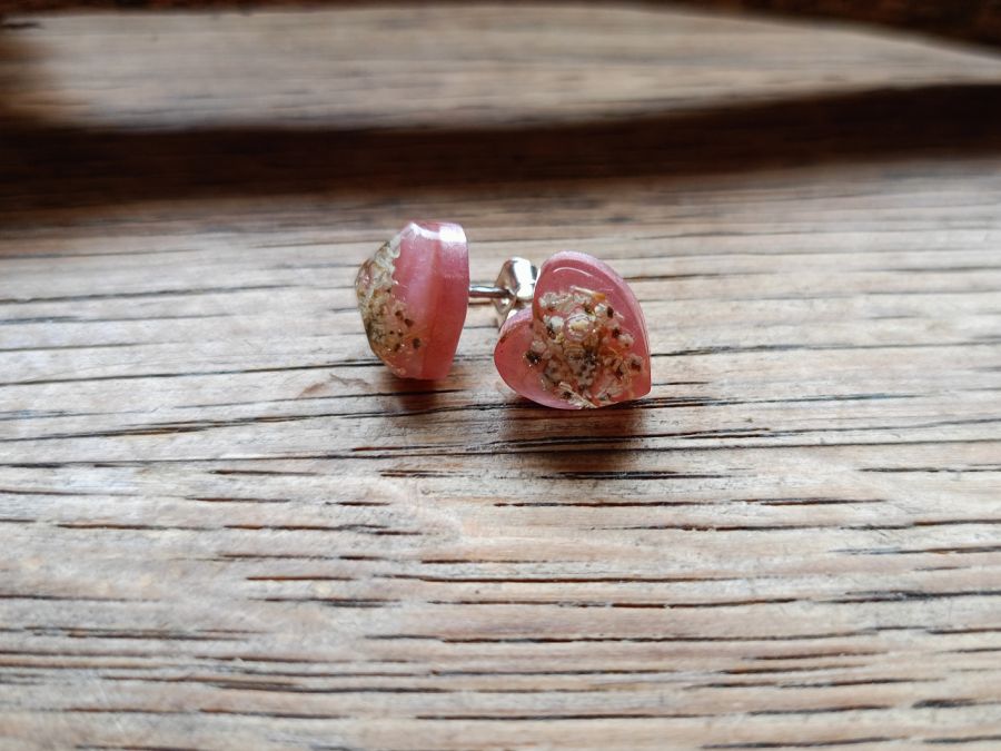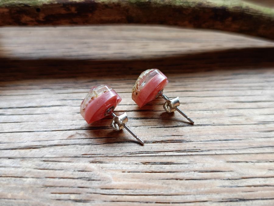 - Kolczyki wykonane ręcznie z utwardzonej żywicy epoksydowej, często z dodatkiem elementów dekoracyjnych (np. suszonych roślin, brokatu, drewna, pigmentów). Elementy metalowe (np. zawieszki, łańcuszki) są wolne od niklu lub wykonane ze stali nierdzewnej – w zależności od wersji produktu.