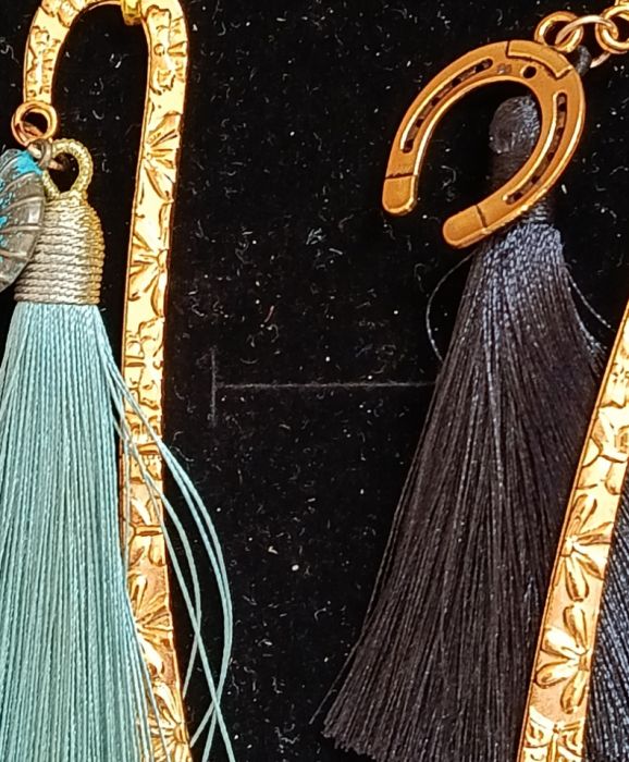 Niezwykle oryginalny komplet metalowych zakładek ozdobionych chwostami i elementami