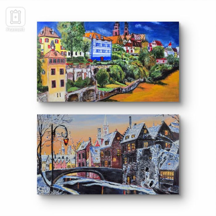 Obraz akrylowy ręcznie malowany na płótnie naciągniętym na drewniany blejtram.