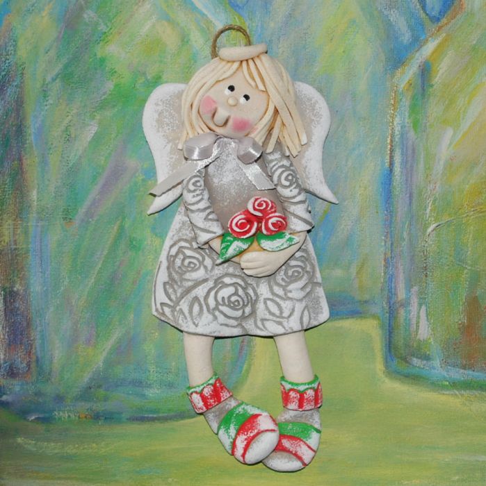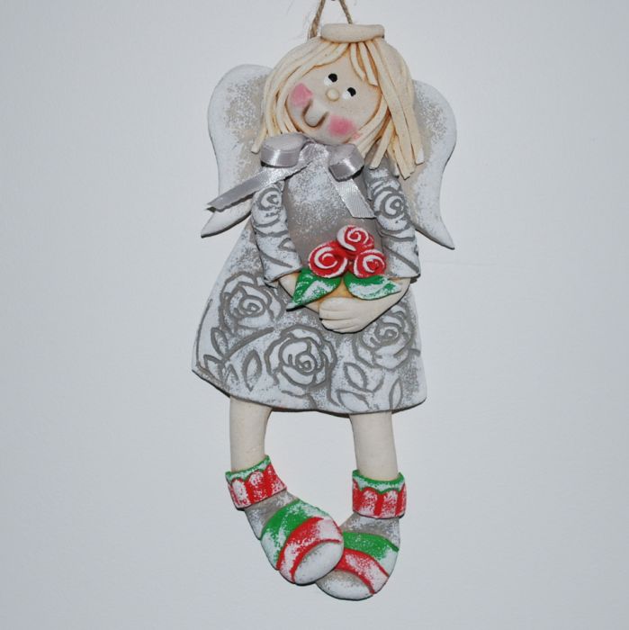 Nazwa produktu: Komu Róże? Komu? - aniołek z masy solnej, prezent, dekoracja