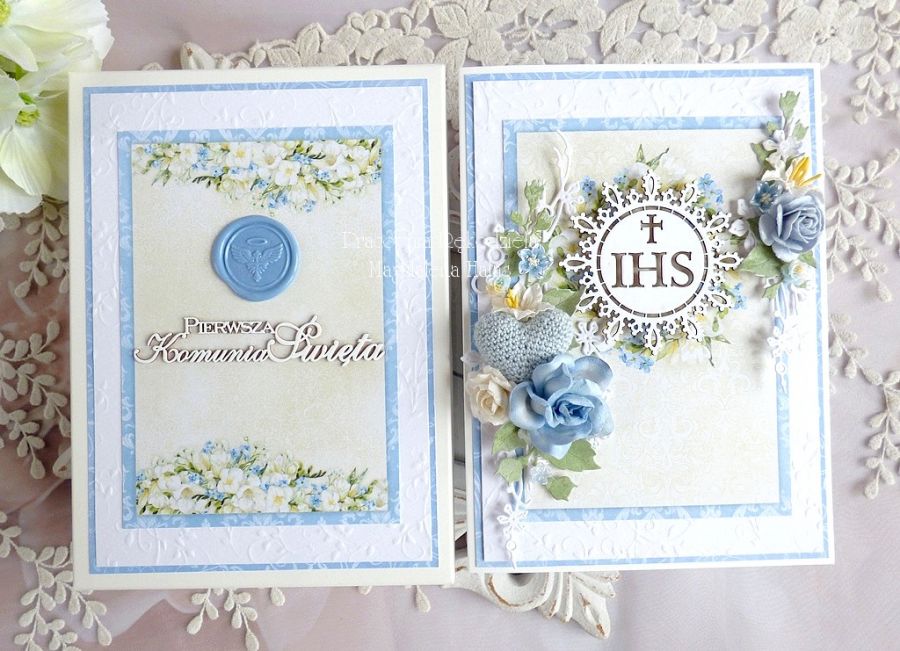 Komplet jest wykonany ręcznie z najwyższej jakości materiałów do scrapbookingu z dbałością o każdy szczegół.