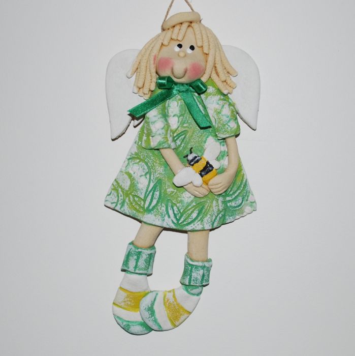 Nazwa produktu: Konwaliowa kreacja - aniołek z masy solnej, prezent, dekoracja