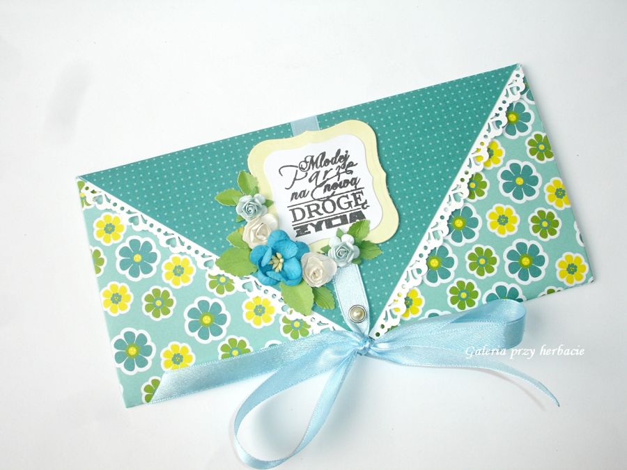 Nazwa produktu: Kopertówka dla Młodej Pary w kolorze turkusowo - niebieskim.