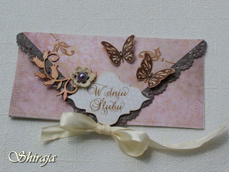 Zadaj pytanie dotyczące produktu: Kopertówka z okazji ślubu ' retro róż'