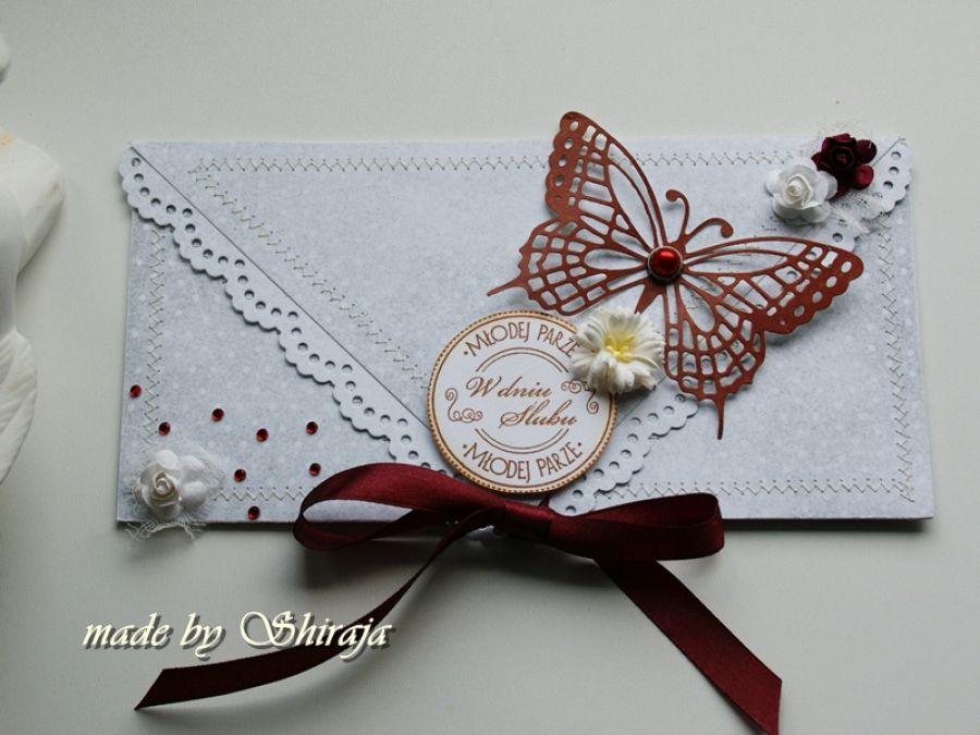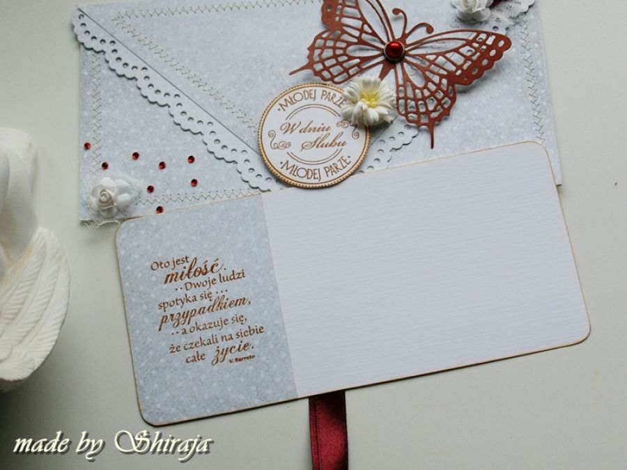 Nazwa produktu: Kopertówka z okazji ślubu-'czerwcowy motyl'