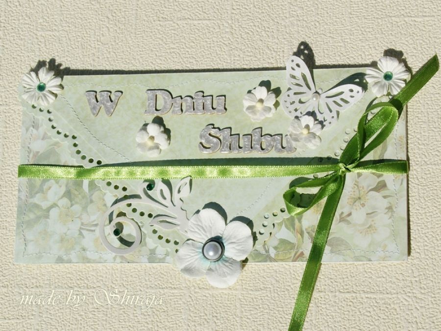 Nazwa produktu: Kopertówka z okazji ślubu 'green flowers'- wyprzedaż