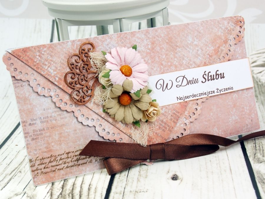 Zadaj pytanie dotyczące produktu: Kopertówka z okazji ślubu- różowe retro