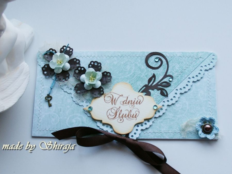 Zadaj pytanie dotyczące produktu: Kopertówka z okazji ślubu-'turkus i brąz'
