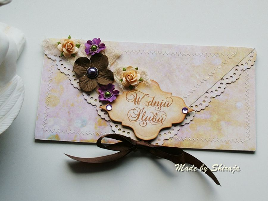 Nazwa produktu: Kopertówka z okazji ślubu-'wrzosowa łąka'