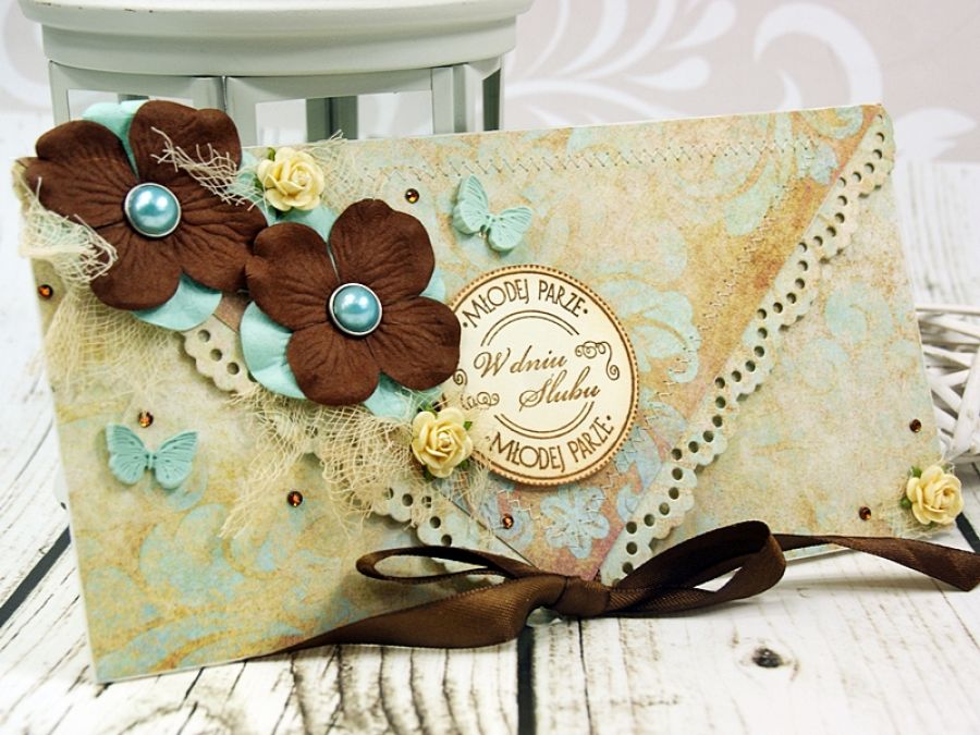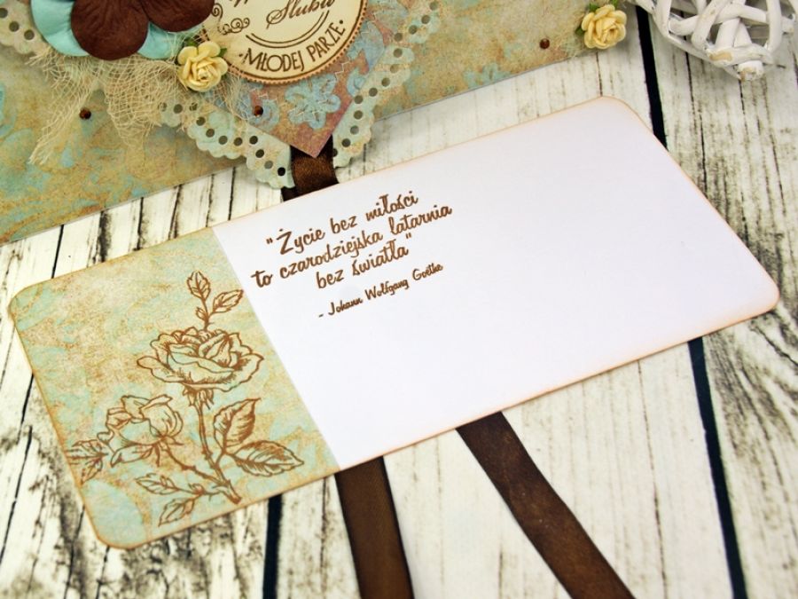 Nazwa produktu: Kopertówka z okazji ślubu-turkusy i brązy